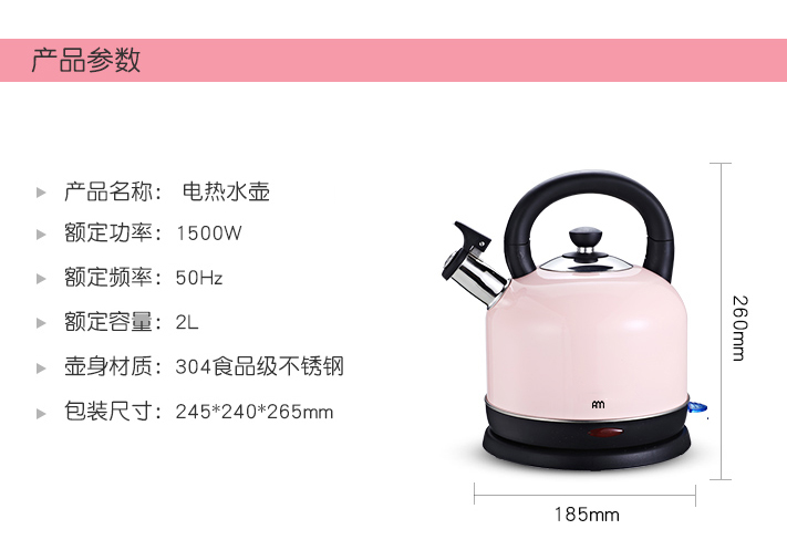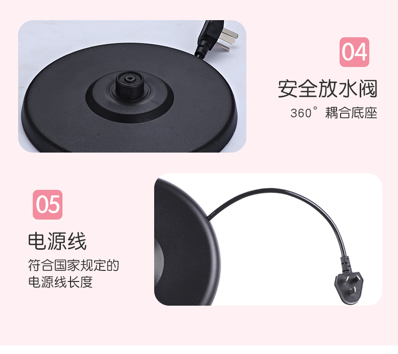 2L大容量水壶可以煮沸约6分钟,并放置在其自己的圆形连接底座上。